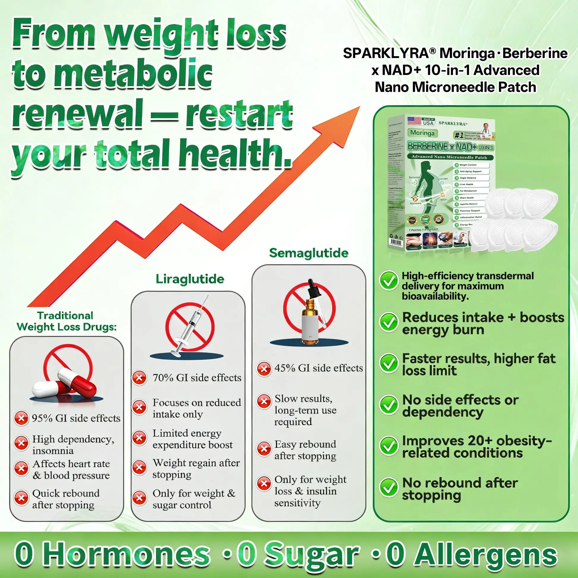 ๐๐ฉ๐๐ซ๐ค๐น๐๐ฟ๐ฎยฎ๐๐-๐ข๐ง-๐ ๐๐๐ง๐ ๐๐ข๐๐ซ๐จ๐ง๐๐๐ ๐๐ ๐๐๐ญ๐๐ย is the result of over 20 years of research and development by more than 30 experts. It is specially designed for all middle-aged, elderly, and overweight individuals. This product utilizes nano-scale microneedle technology to ensure the active ingredients can reach the cells effectively and painlessly. Its advanced formula contains high concentrations of natural active ingredients such as ๐๐๐ซ๐ฏ๐ฒ๐ซ๐ข๐ง๐ , moringa, which work synergistically to support blood sugar stabilization, appetite regulation, and fat metabolism, enabling a gradual and sustainable weight management process. NAD+ and collagen peptides help maintain skin firmness and elasticity during weight changes, allowing you to look and feel great while slimming down. Other natural ingredients support immune function, digestion, gut balance, women’s health, daily energy levels, and fatigue relief, helping you regain youthful vitality from the inside out. This product is manufactured in a GMP-certified facility that meets US and EU quality standards, providing a convenient, painless, science-driven solution for safe and comprehensive weight management and long-term health.